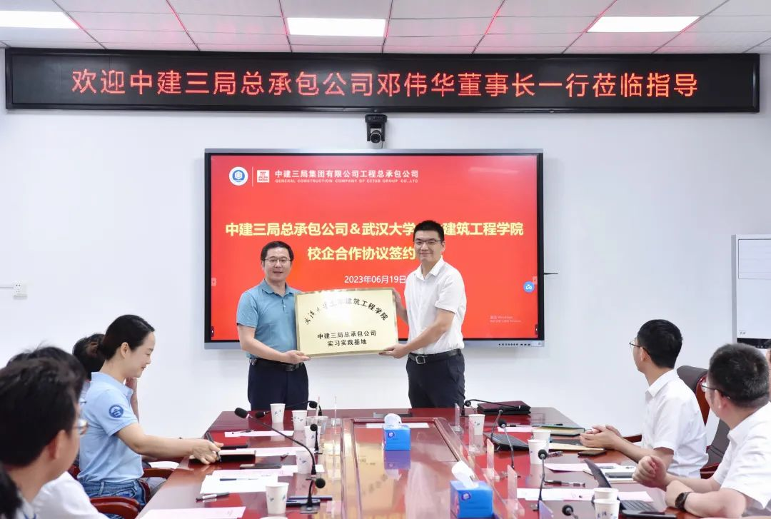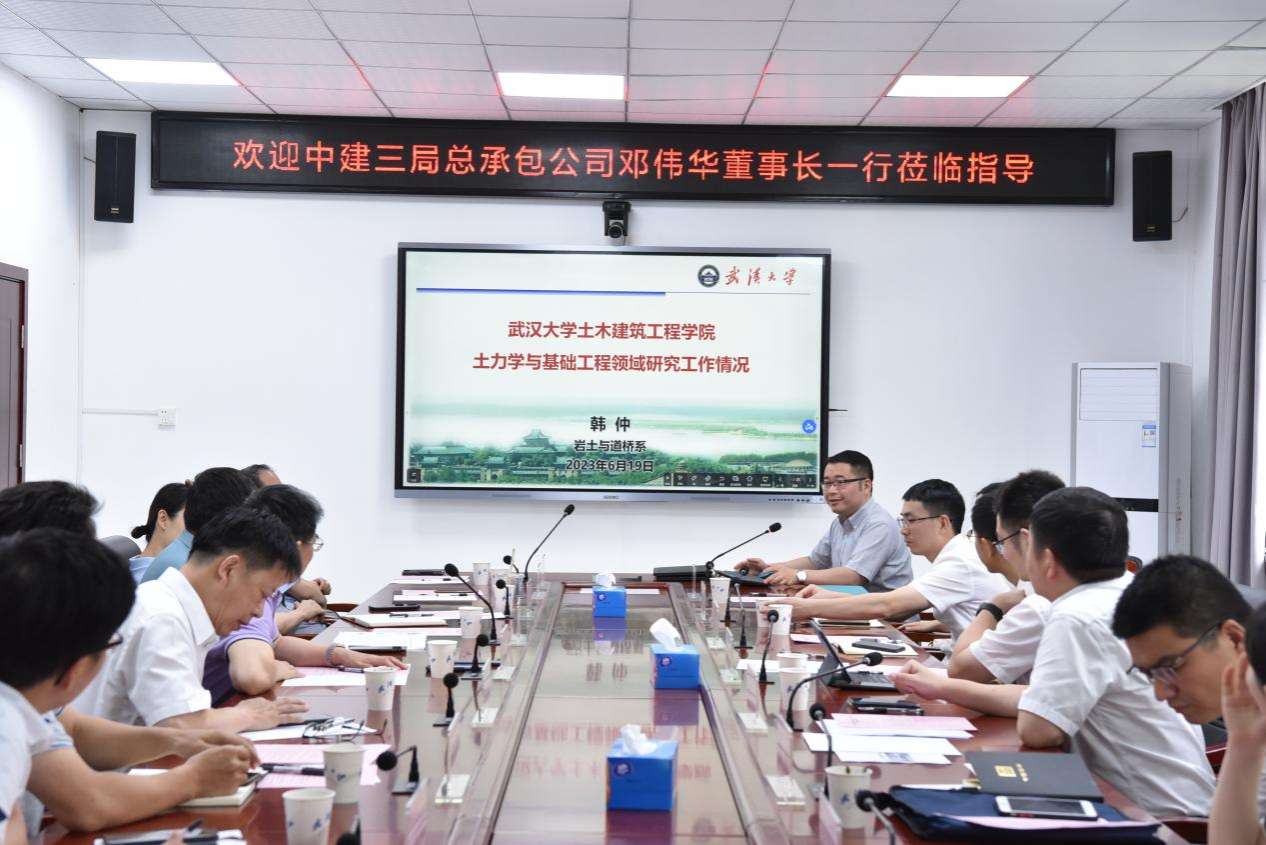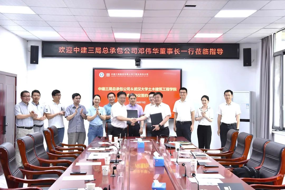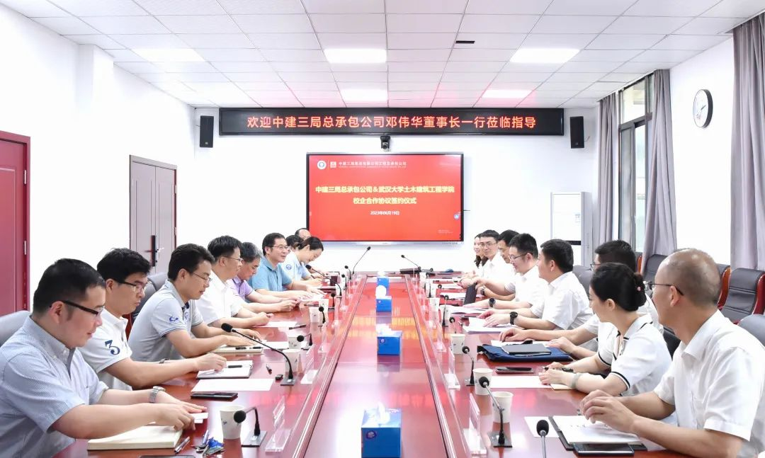 2023年6月19日,中建三局总承包公司党委书记、董事长邓伟华一行来永利官网开展校企合作系列活动。中建三局总承包公司党委副书记代勇、总工程师余地华、人力资源部经理付锐琳、党委办公室主任江敏、技术部副经理倪朋刚、中国建筑先进技术研究院总承包公司分院副院长欧阳明勇、人力资源部经理助理凡傲、湖北公司人力资源部经理刘小红同行,学院党委书记杨旭、院长刘泉声、yl9193永利官网人事部副部长张晓平、学院党委副书记王忠海、副院长肖娴娴、副院长于清亮、建筑工程系教授胡晓斌、岩土与道桥系副教授韩仲、党政办公室主任席睿参加活动。